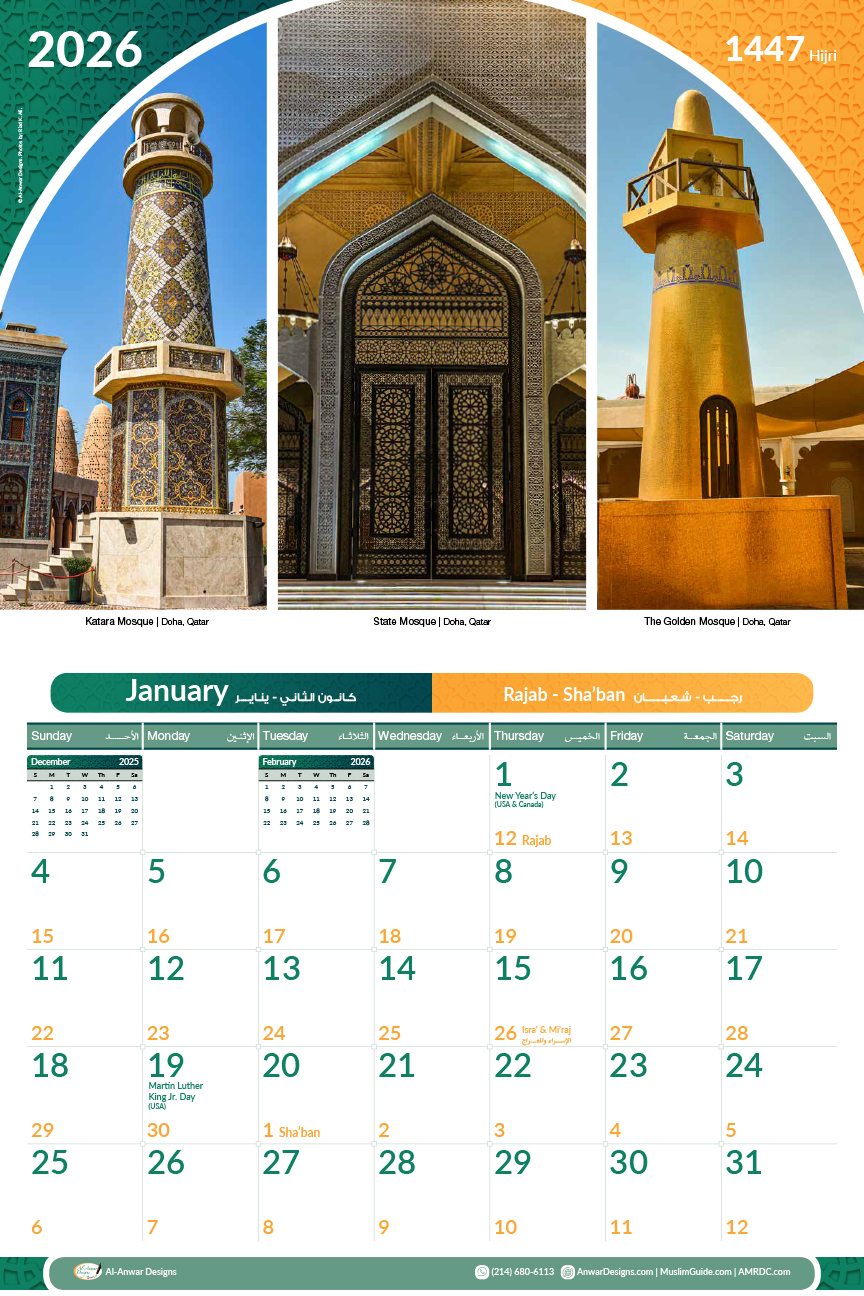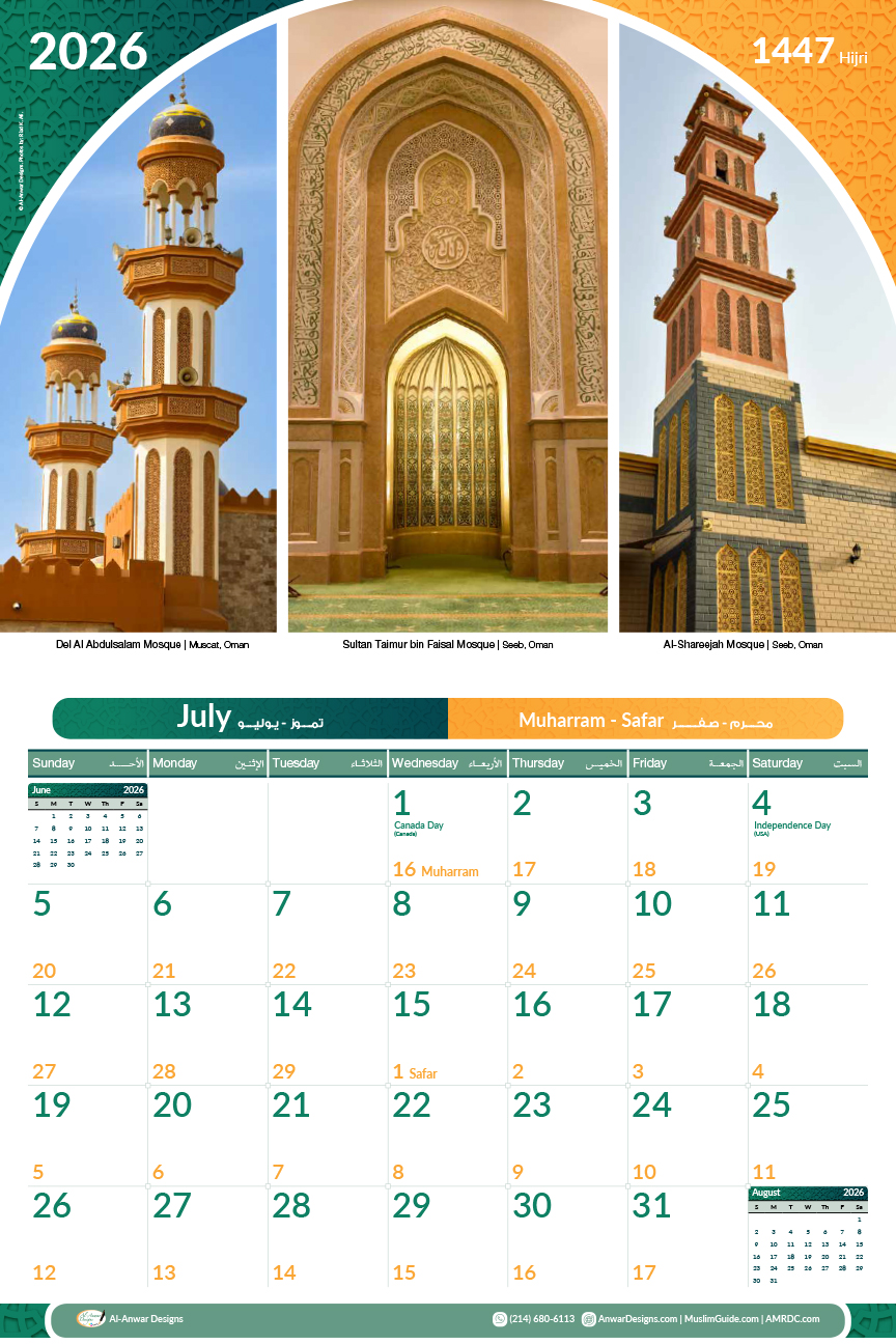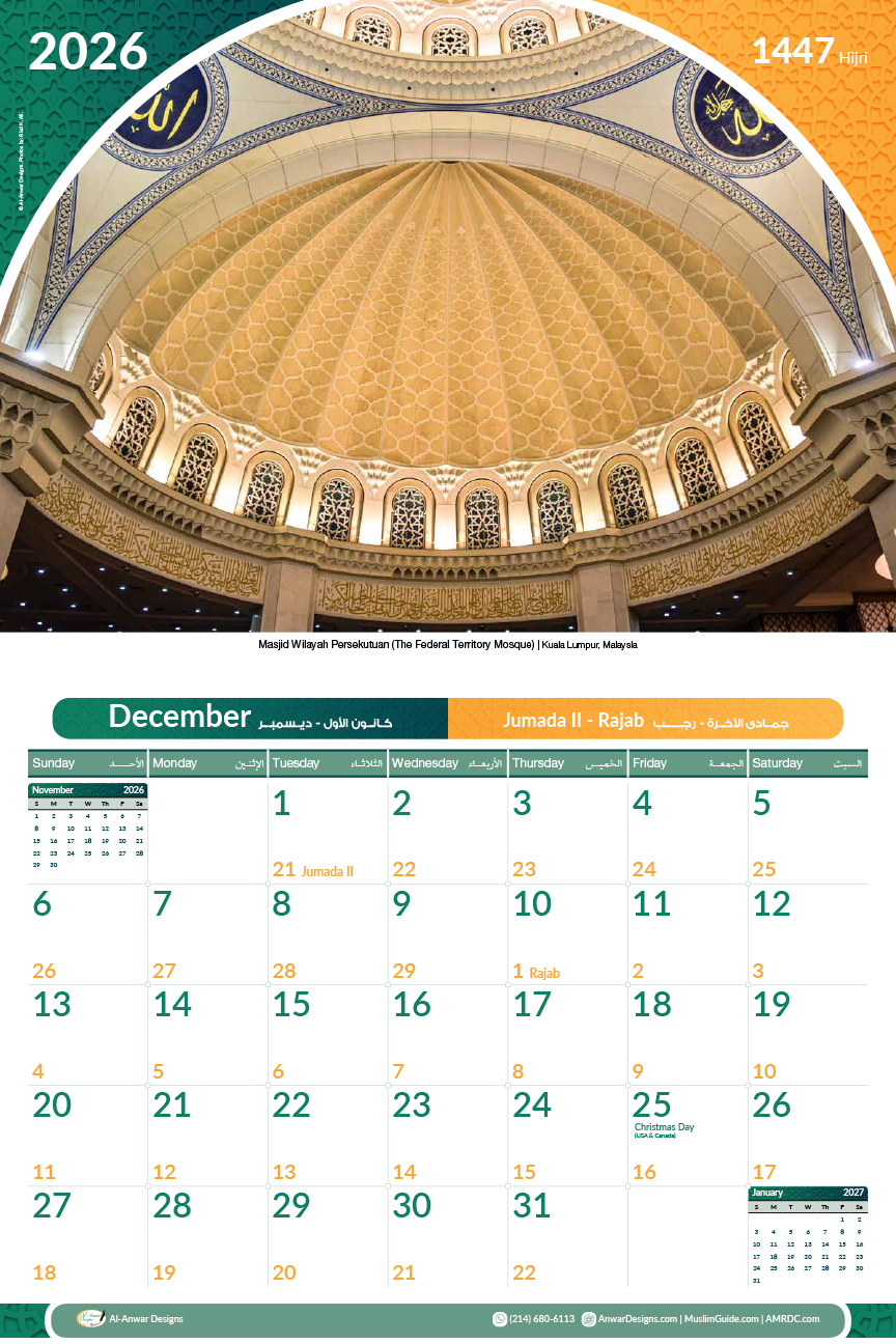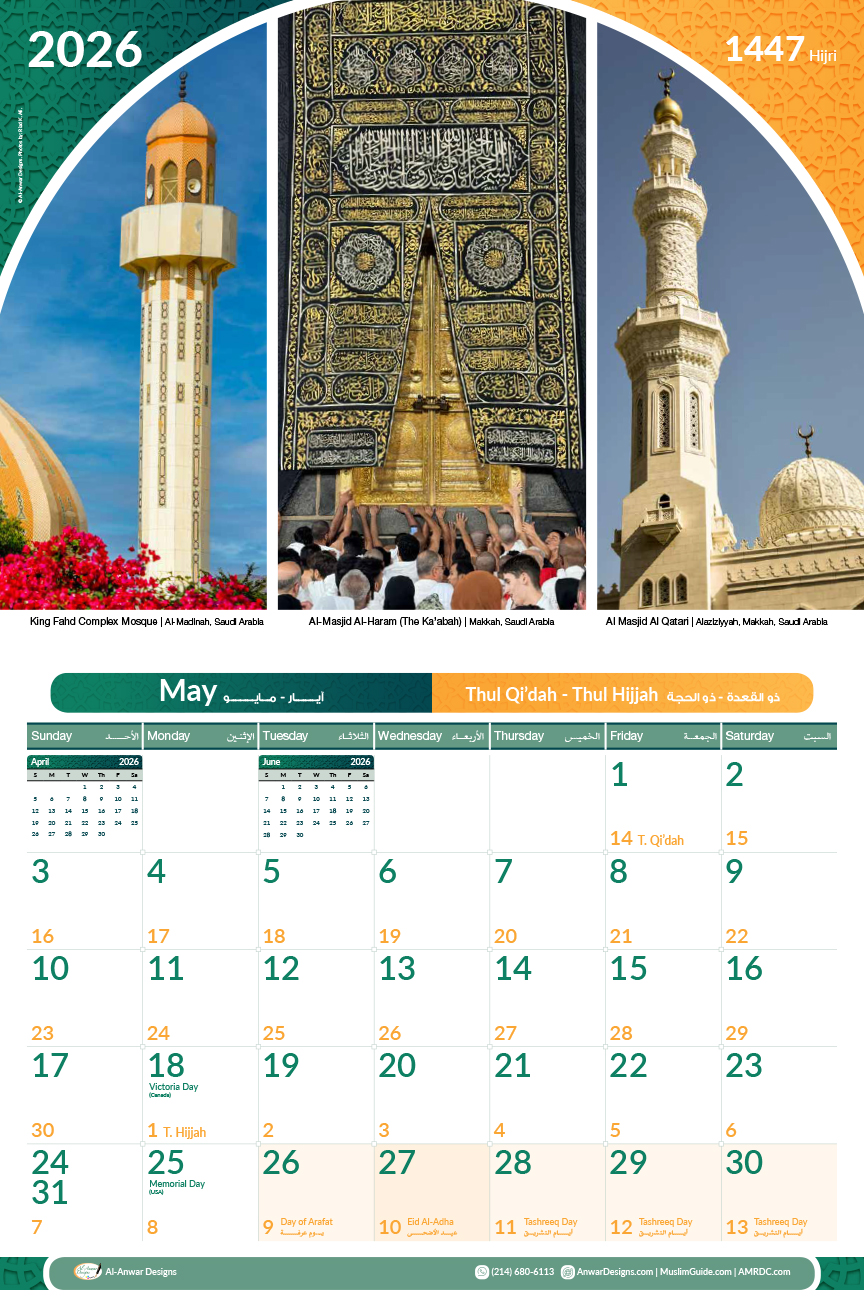 - 2 Calendars in One – Has Both Gregorian and Hijri dates