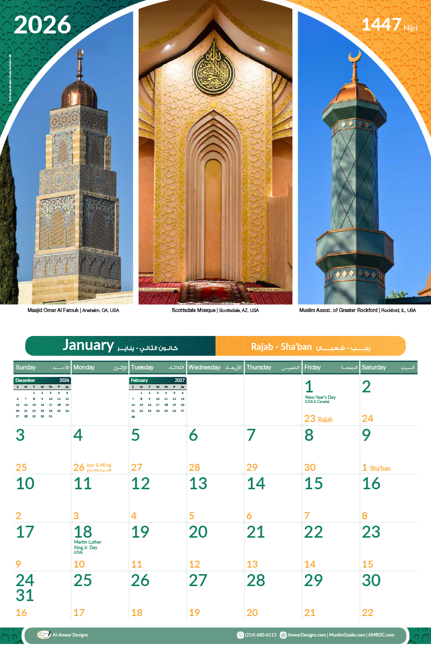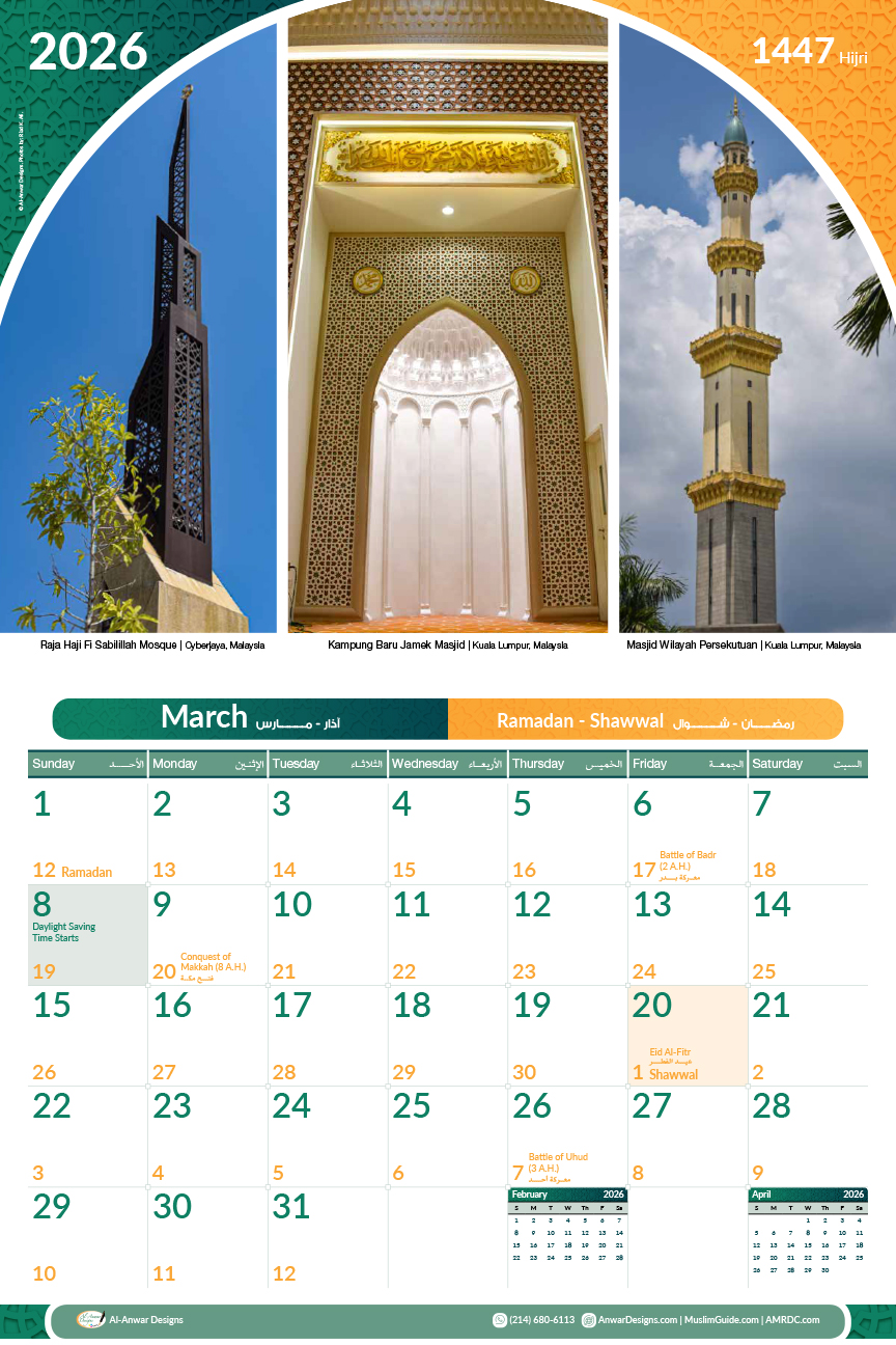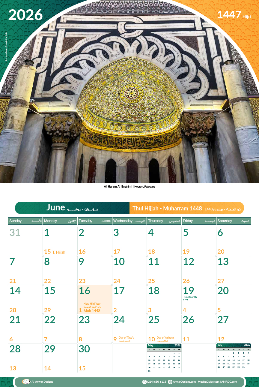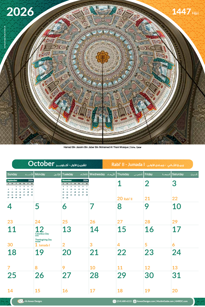 - 2 Calendars in One – Has Both Gregorian and Hijri dates