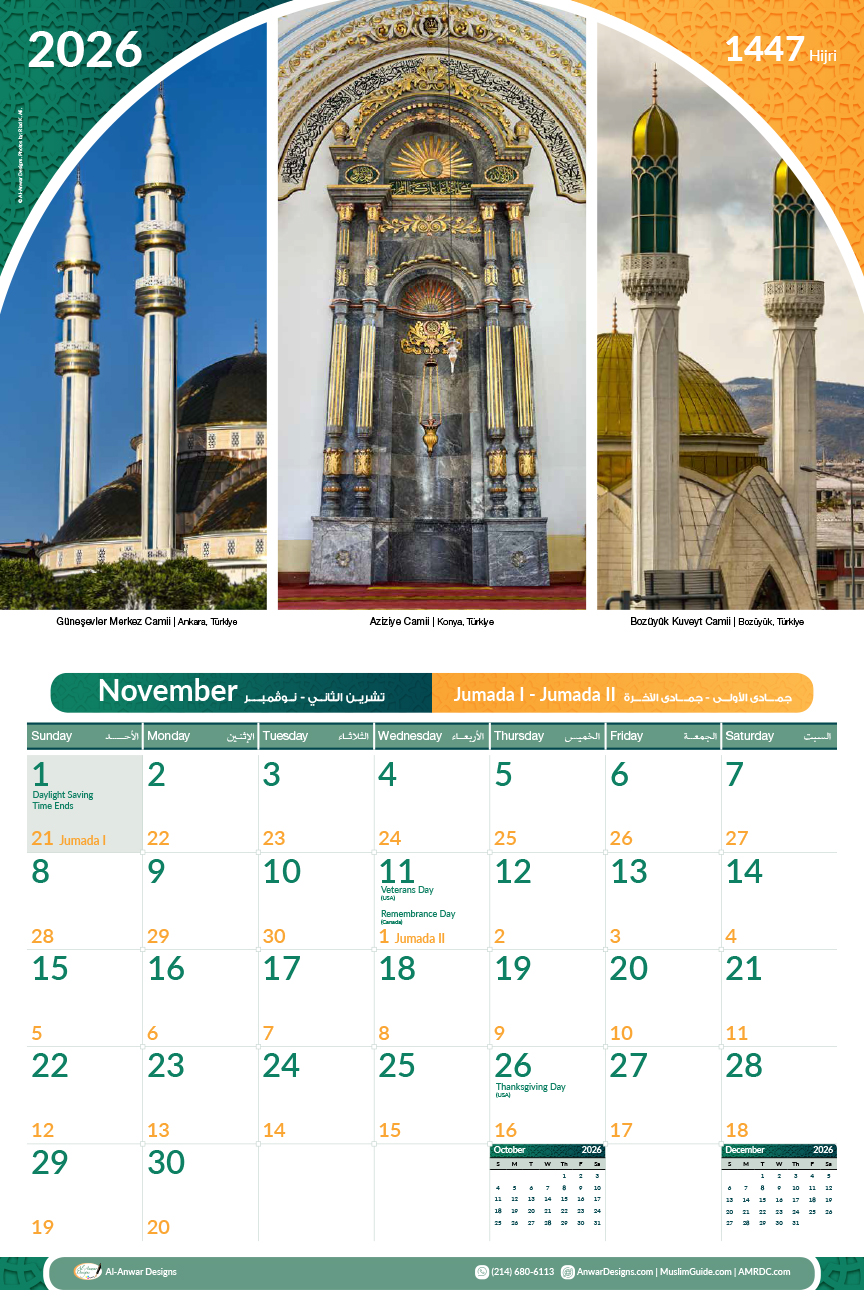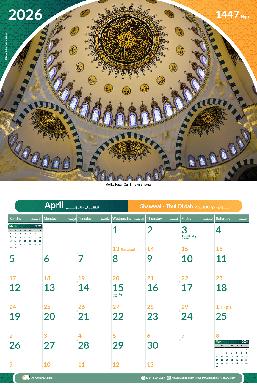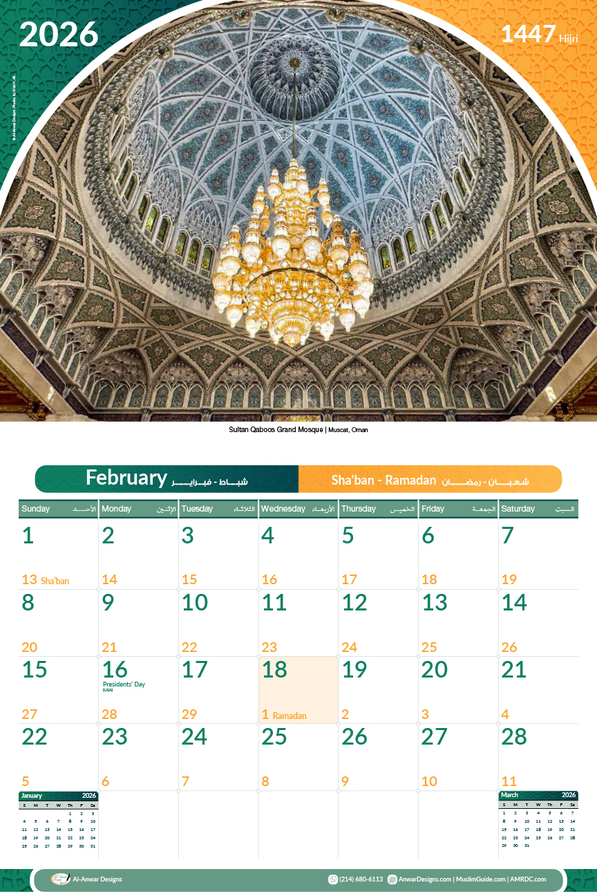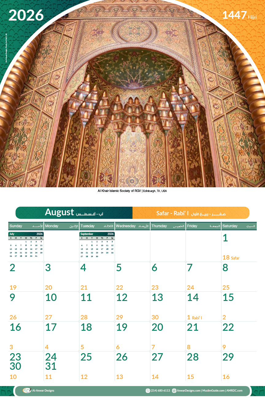 - 2 Calendars in One – Has Both Gregorian and Hijri dates